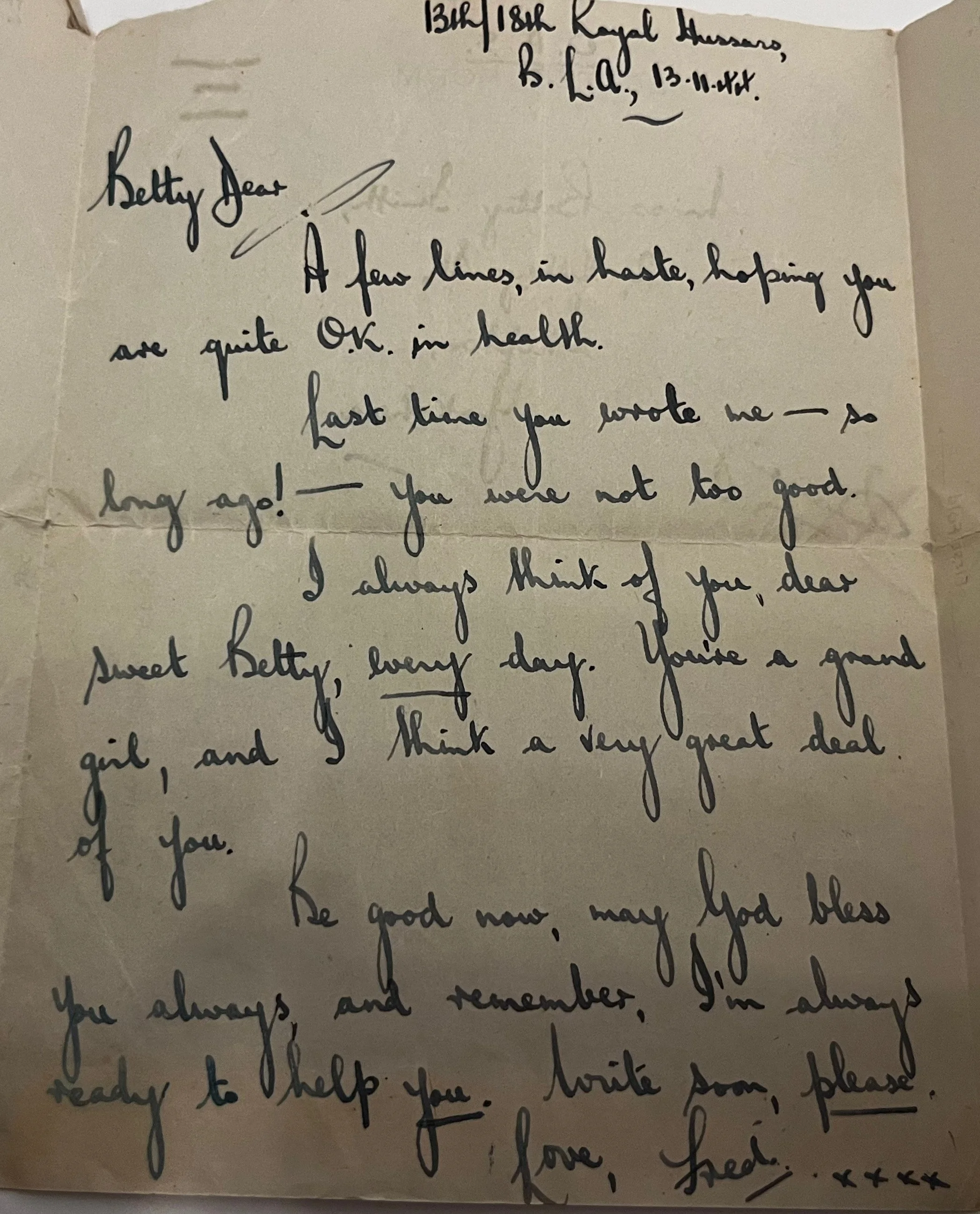 Even with the rigid rules around correspondence, Fred still managed to add a personal touch to his letters to Betty, signing them from ‘Freddie’ with kisses, and highlighting how she had not written to him for a while.