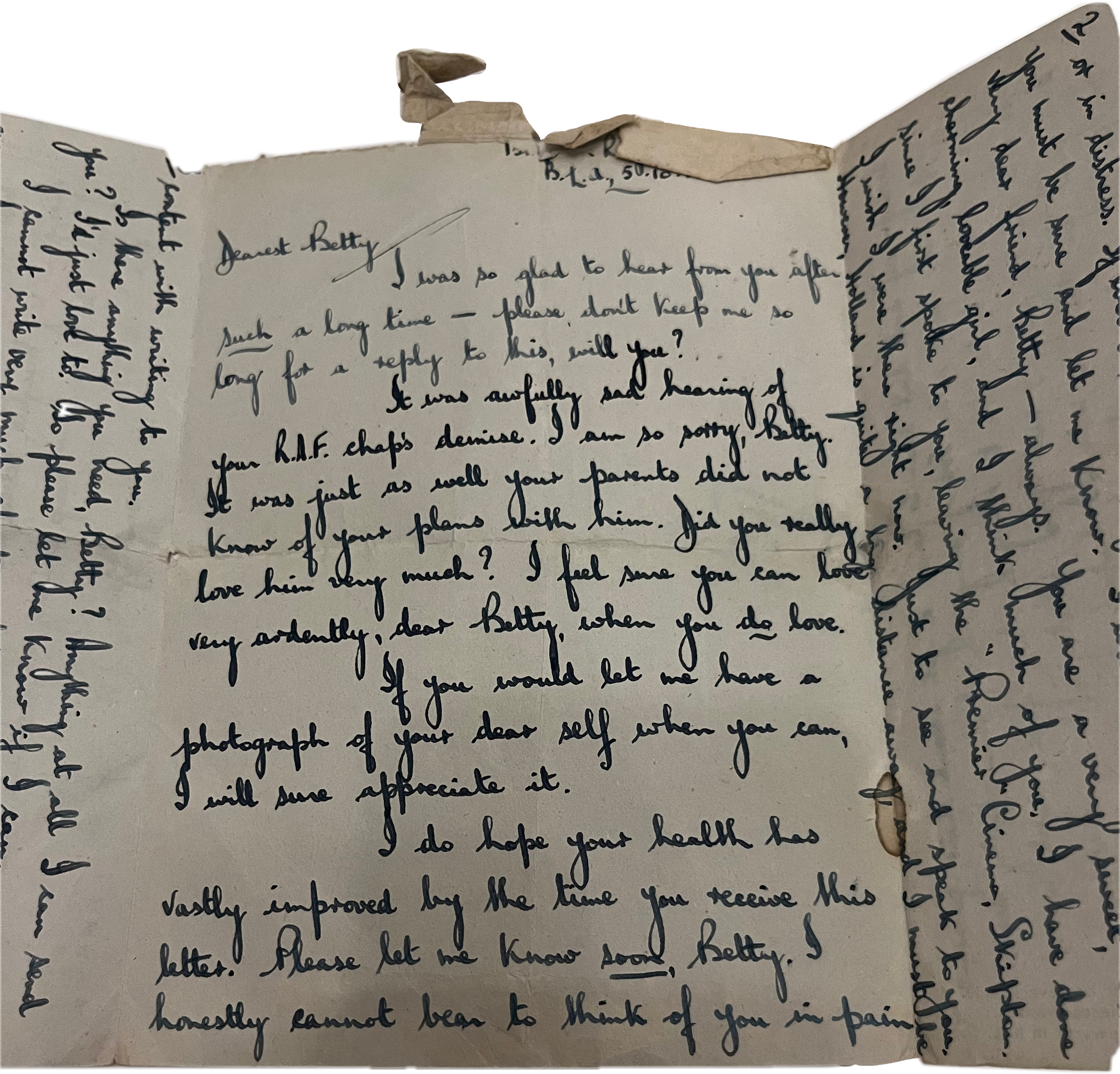 Much of his correspondence shows Betty was reluctant to contact him back. He sent Betty many long, personal letters, detailing his love for her and expressing his longing to hear from her.