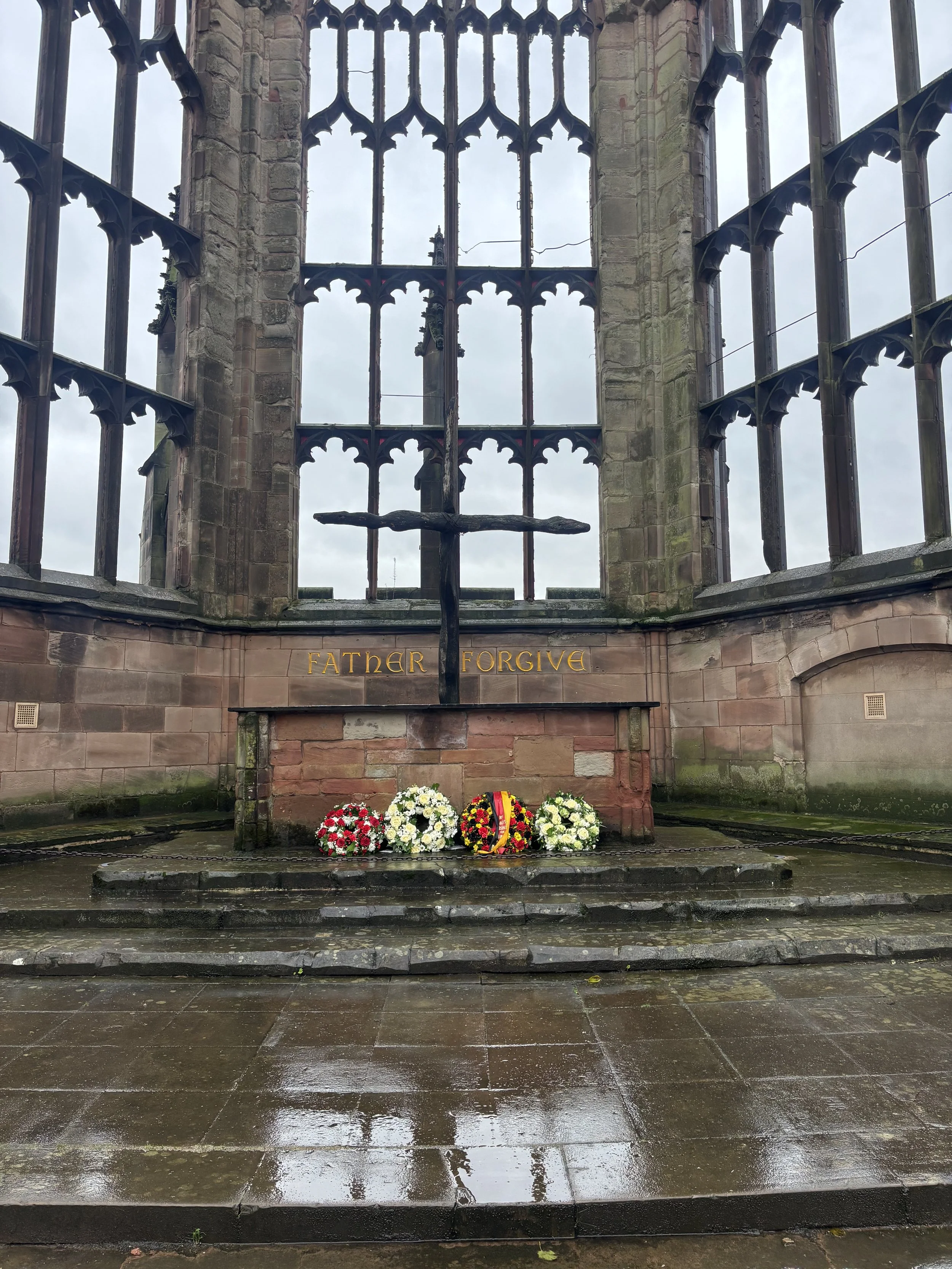 German President Frank-Walter Steinmeier visited the Coventry Cathedral ruins on 5th December 2025 to take part in a wreath-laying ceremony. He was greeted by the Bishop of Coventry, the city’s lord mayor and several other important people of Coventry. The President was joined by his wife, Elke Budenbender, on the final day of their state visit to the UK. A wreath was also laid on behalf of the Duke of Kent, Prince Edward, to commemorate the 85th anniversary of the Coventry Blitz, which was last month. Following the ceremony, a prayer service was held to highlight the cathedral’s commitment to peace, led by the Dean of Coventry. Members of the public and press gathered in and around the ruins, observing a moment of silence as the wreaths were placed.