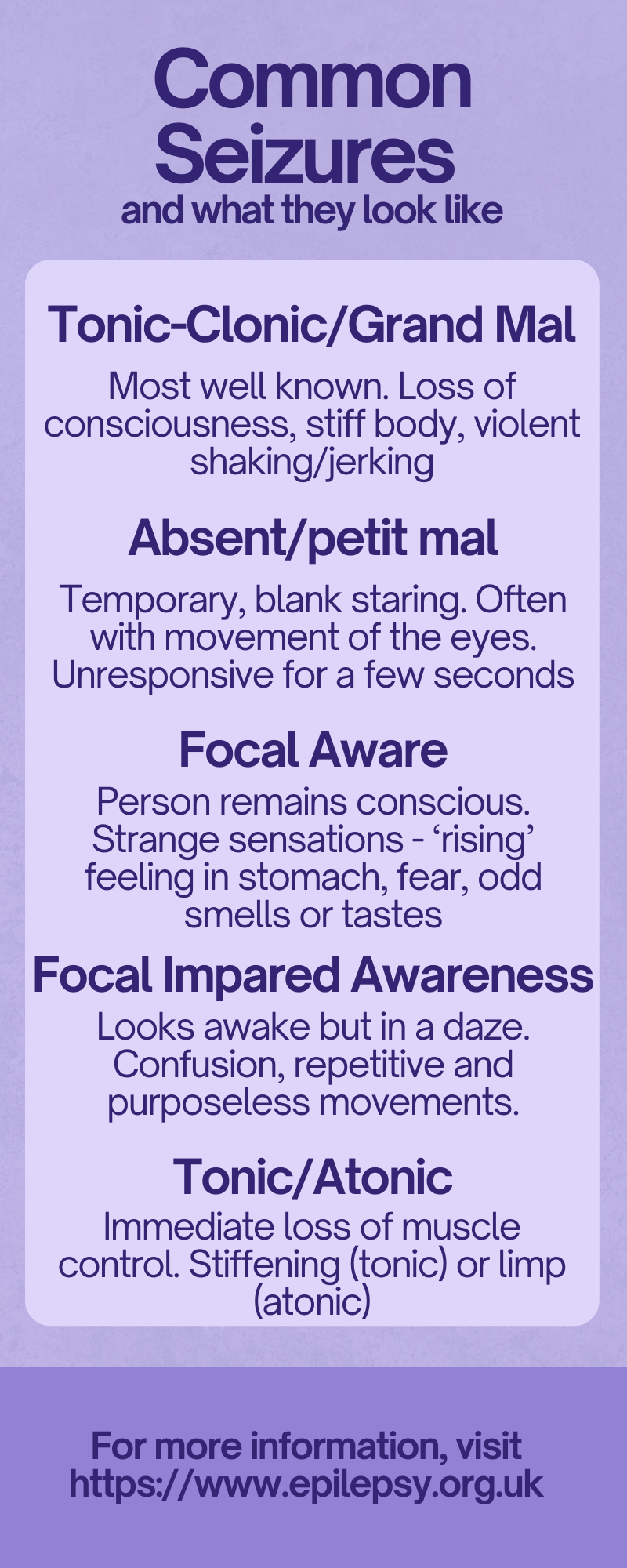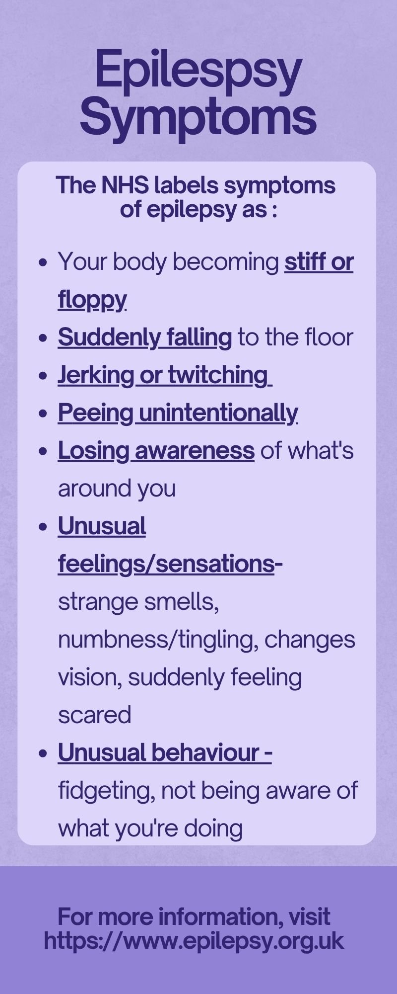 For more information about epilepsy and symptoms, head to https://www.nhs.uk/conditions/epilepsy/