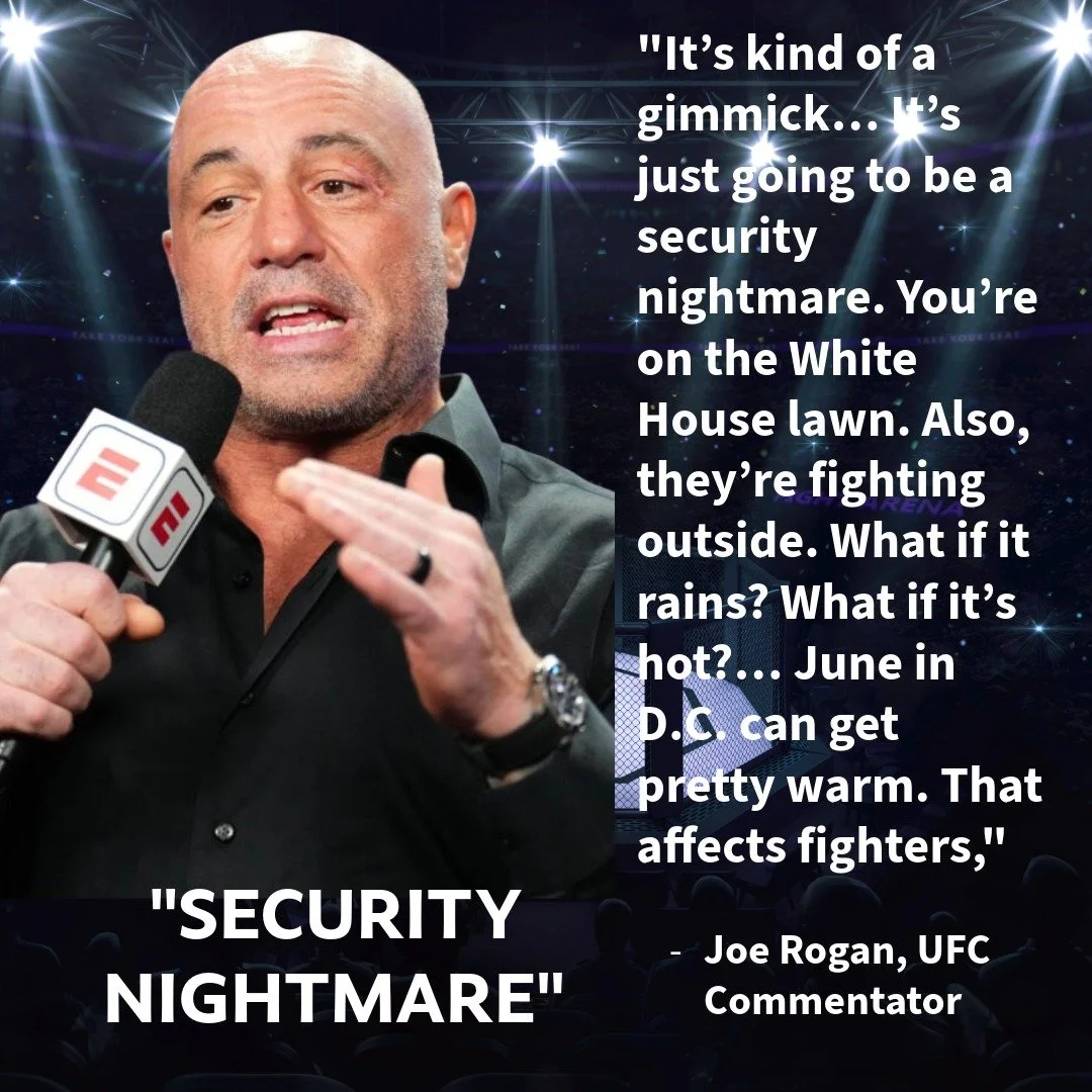 Rejected by talking heads: UFC Commentator Joe Rogan voiced his opposition to the event on a recent podcast, mentioning the safety of the fighters as a main issue with the fight card.