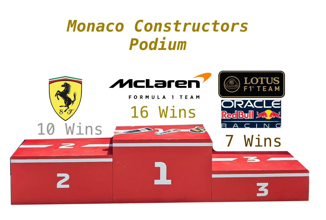 Here is a podium graphic based on the number of wins the top 3 most victorious constructors have at the Monaco Grand Prix.