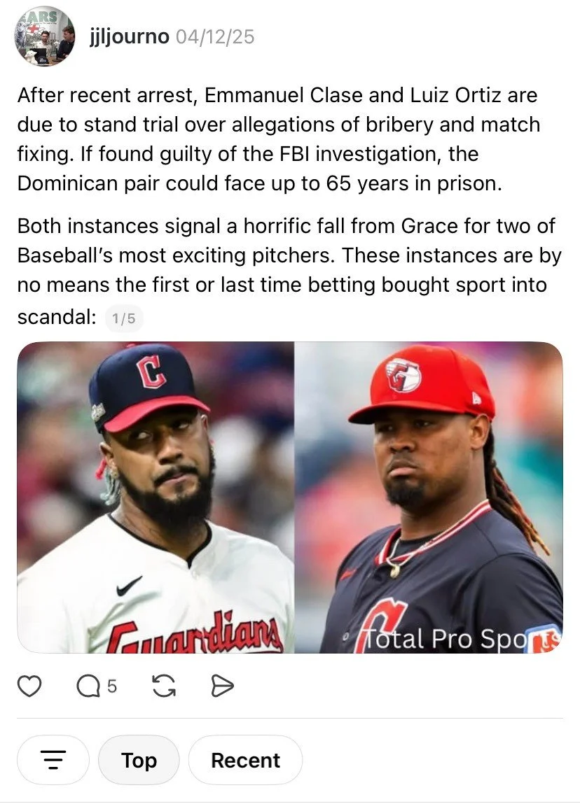 Ortiz and Clase were suspended by their Cleveland Guardians franchise in July amid an investigation into gambling-related activity. Now, in December 2025, the Dominican pair faces up to 65 years in prison on charges of wire fraud conspiracy, money laundering and conspiracy to influence sporting contests by bribery.
